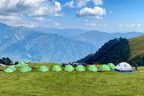 Upper Kyarkoti to Lowar kyarkoti Camp.After breakfast, begin the return trek from Upper Kyarkoti Camp to Lower Kyarkoti Camp, covering approximately 7 kilometersThe downhill trail offers a relaxed pace and gives another chance to enjoy the beautiful alpine meadows and scenic viewsTrekking time is around 3 to 4 hours, allowing for a leisurely walk and time to capture the serene Himalayan landscapesEnjoy the fresh mountain air, peaceful surroundings, and the quiet charm of the forest and Bugyals on the descentReach Lower Kyarkoti Camp by early afternoon and spend the rest of the day resting and enjoying the campsiteOvernight stay in tents at Lower Kyarkoti Camp, with dinner and relaxation under the open Himalayan sky